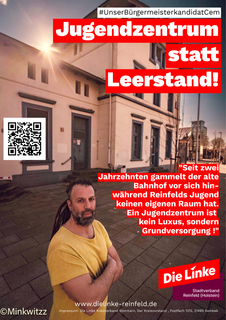 Viele Jugendliche in unserer Stadt stehen jeden Tag vor derselben Frage: Wohin nach der Schule? Wo kann man sich treffen, ohne etwas kaufen zu müssen? Wo darf man einfach sein, Musik hören, reden, lachen oder gemeinsam Ideen entwickeln? Die Antwort darauf fehlt in Reinfeld bisher viel zu oft. Wenn junge Menschen keinen eigenen Ort haben, bleiben sie zuhause, hängen allein am Handy oder weichen in andere Städte aus. Dabei brauchen Jugendliche Räume, in denen sie sich ausprobieren, Freundschaften stärken und Gemeinschaft erleben können. Orte, die zeigen: Ihr gehört zu dieser Stadt. Eure Zukunft zählt hier. Ein konkretes Beispiel liegt direkt vor uns: der leerstehende Bahnhof. Statt Stillstand könnte hier ein lebendiger Treffpunkt für Jugendliche entstehen – ein sicherer Ort zum Lernen, kreativ sein, Chillen oder Projekte starten. Ein Platz von Jugendlichen für Jugendliche. Denn wer jungen Menschen Raum gibt, investiert in die Zukunft der ganzen Stadt. Wir wollen, dass Jugendliche nicht nur in Reinfeld wohnen – sondern sich hier zuhause fühlen. Lasst uns Reinfeld zu einer Stadt machen, die ihre junge Generation ernst nimmt.